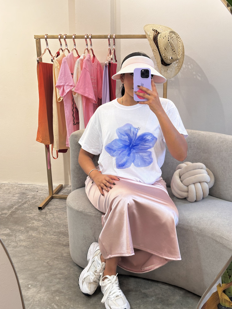 Franela de Flor Azul Over Size